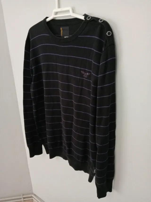 Jersey de punto de manga larga con cuello redondo y un diseño de rayas horizontales.