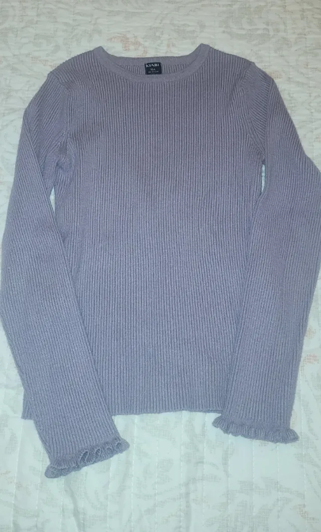 Jersey de manga larga para niña de la marca Kiabi. - Color lila. - Tejido de canalé. - Puños y bajo con detalle festoneado.
