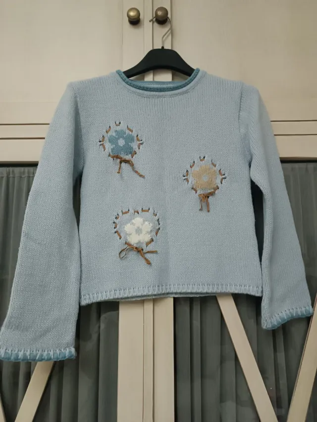 Jersey de punto azul para niña de la marca Koala. - Diseño con aplicaciones de flores. - Manga larga. - Cuello redondo.