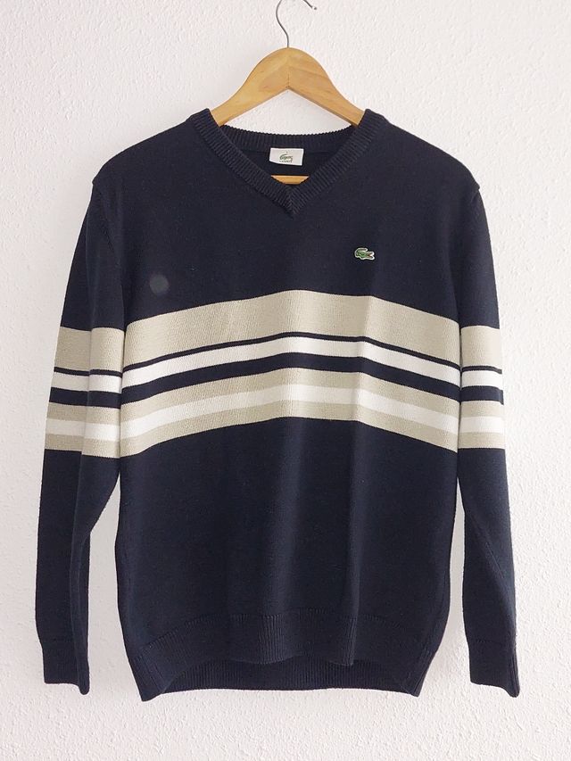 Jersey Lacoste V-Neck Rayas Beige Negro