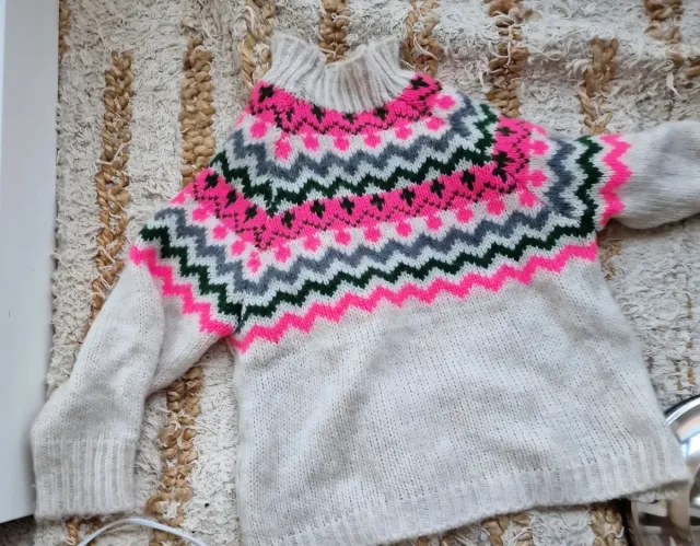 Jersey lana beige greca rosa cuello subido