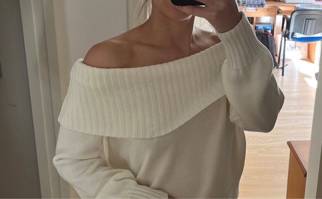 Jersey Massimo Dutti Hombros Descubiertos Blanco