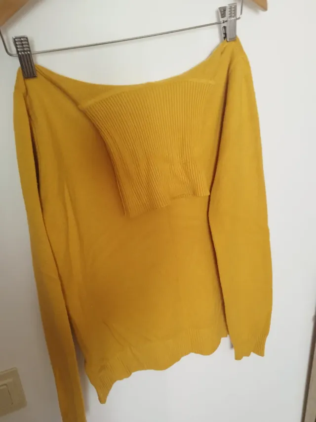 Detalles del productoJersey de punto en color mostaza, con cuello alto y manga larga. Ideal para un look casual.
