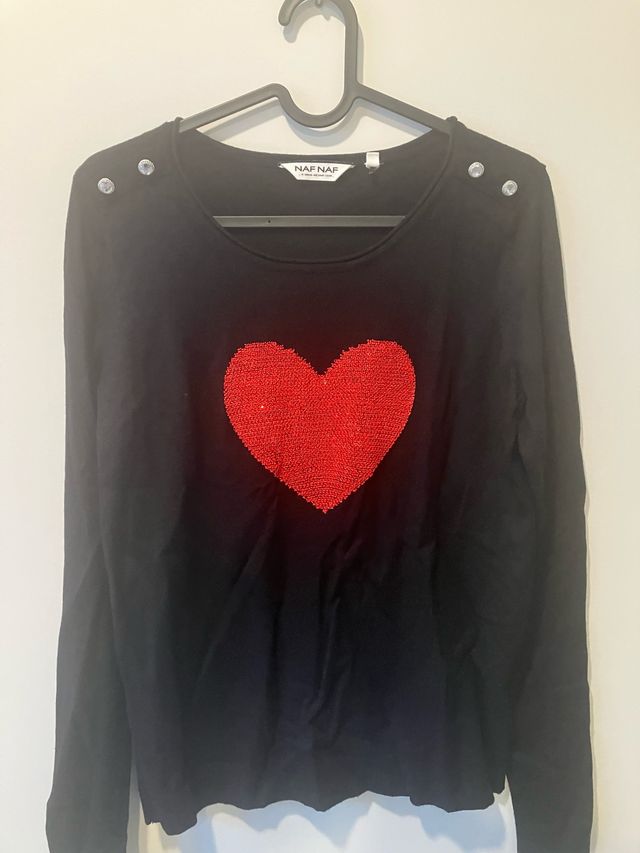 Jersey Naf Naf Corazón Lentejuelas Rojo