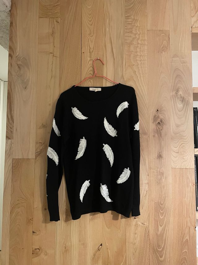 Jersey negro con plumas blancas