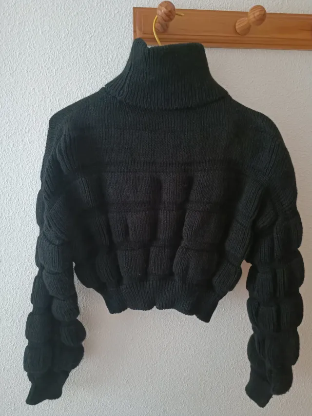 Jersey punto negro cuello vuelto