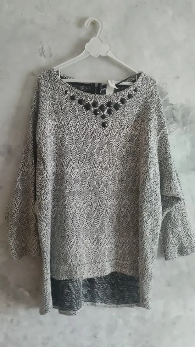 Jersey negro y gris con pedrería