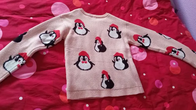 Detalles del productoJersey de punto para niña con estampado de pingüinos.