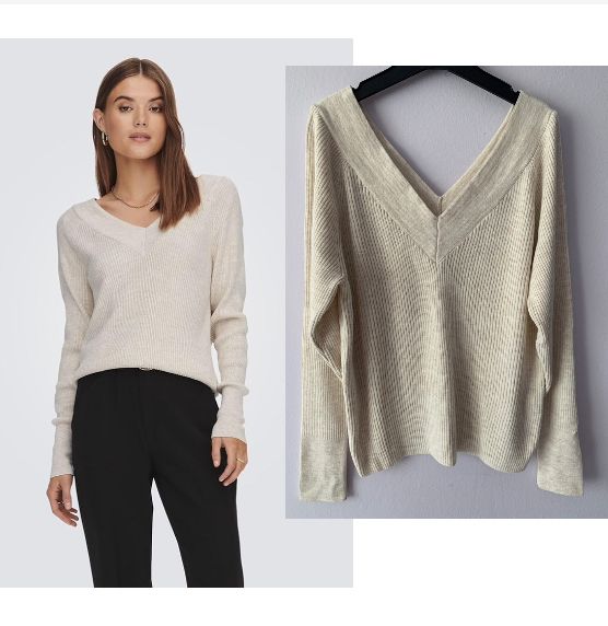 Jersey ONLY V-neck beige mujer Talla M.