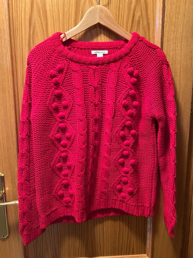 Jersey punto gordito, cuello redondo,rojo