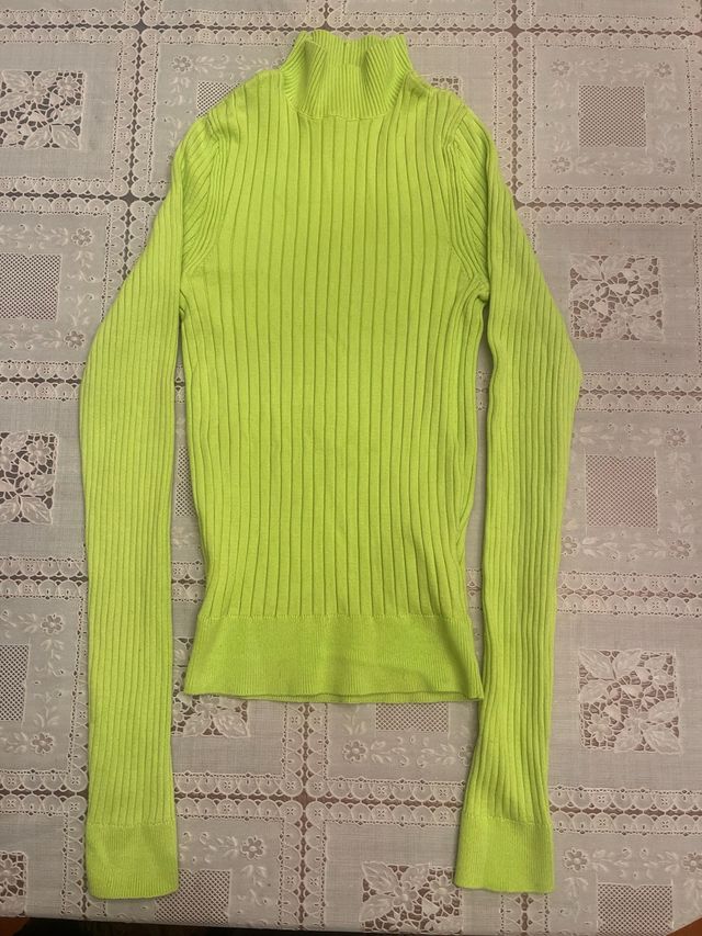 Jersey verde lima cuello alto acanalado
