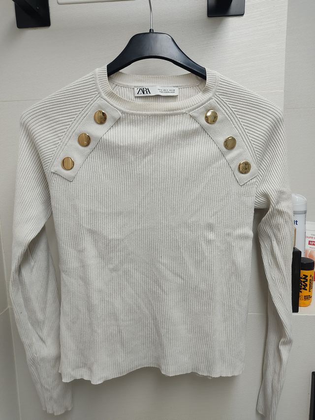 Jersey Zara blanco botones dorados talla M