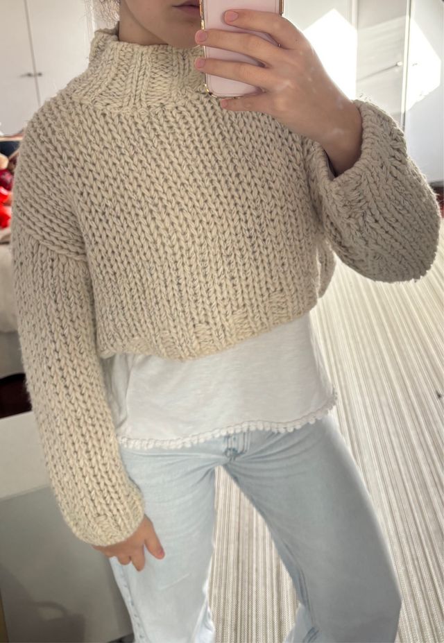 Jersey Zara corto cuello cisne lana beige