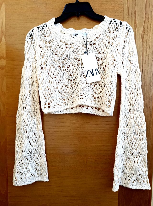 Jersey Zara Crochet Corto Talla S beige