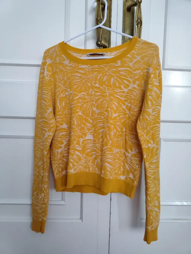 Jersey de punto fino con estampado de hojas en relieve. Ideal para un look casual y fresco.