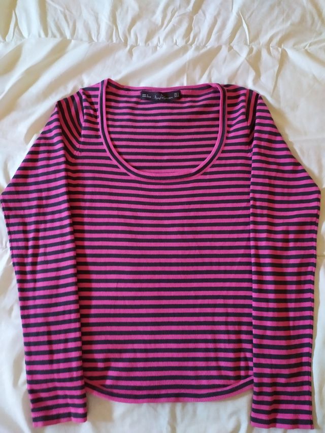 Jersey Zara Rayas Fucsia y Gris. Talla S