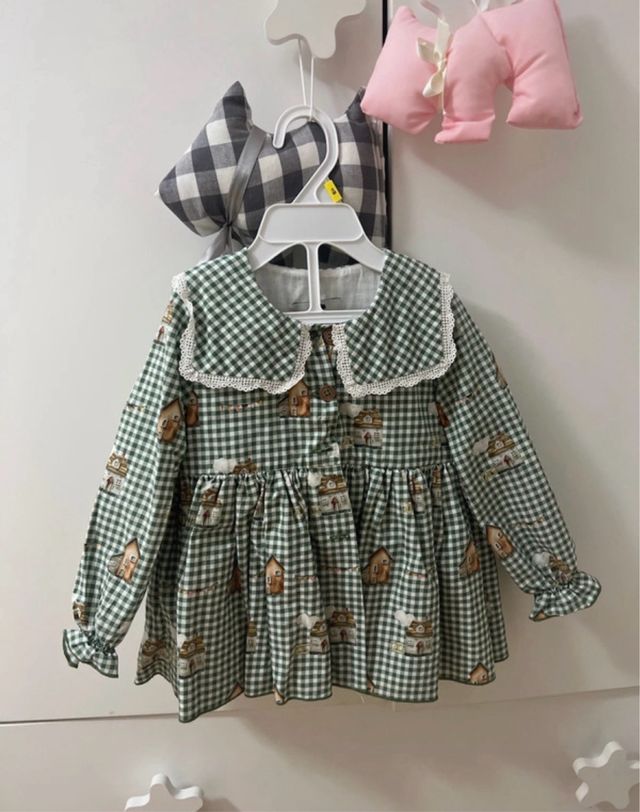 Detalles del productoJesusito de la marca La Martinica con estampado de cuadros verdes y casitas.