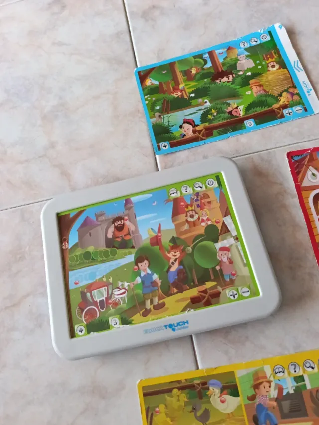 Juego interactivo de cuentos en catalán. - Incluye varias tarjetas con escenas de cuentos. - Diseñado para el aprendizaje interactivo.