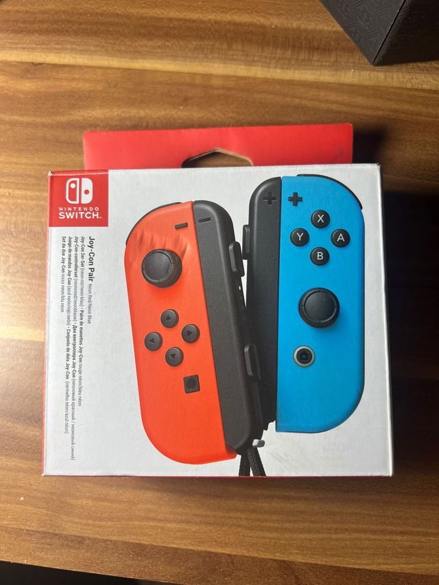Detalles del productoPar de mandos Joy-Con para Nintendo Switch en colores Rojo Neón y Azul Neón. Incluye su caja original.