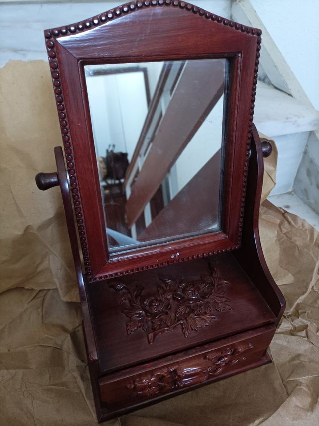 Espejo-joyero mesa de madera tallado