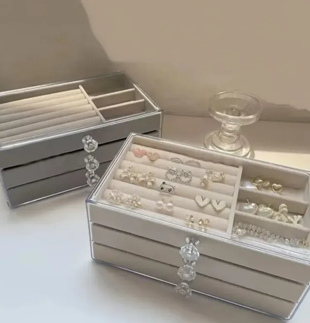 Joyero organizador 1 beige y 1 plateado
