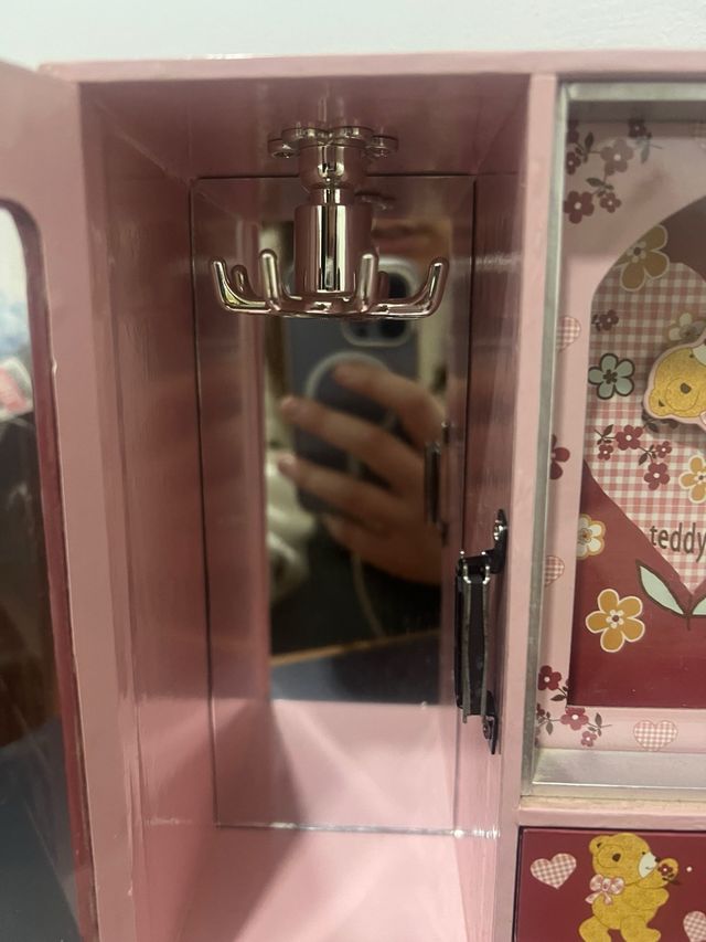 Joyero rosa con espejo y cajones