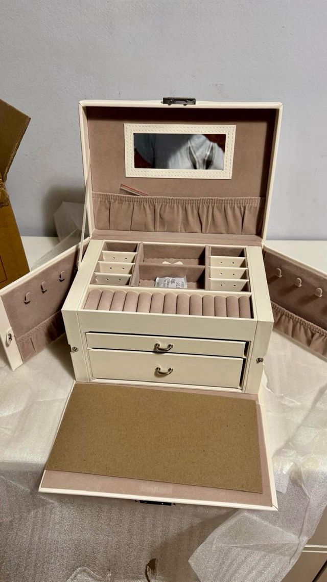 Joyero Songmics grande beige y blanco