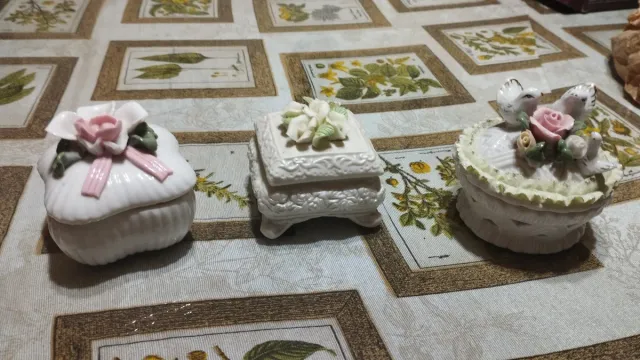 Joyeros de porcelana con flores y pájaros