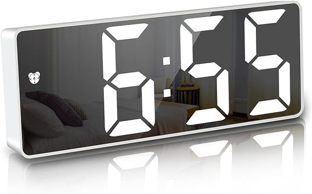 Detalles del productoJQGo Reloj Despertador Digital, Pantalla LED Espejo Grande, Alimentado por Batería, Alarma Activada por Sonido, con Pantalla de Fecha y Temperatura Función Despertado, Blanco. Nuevo en su caja.