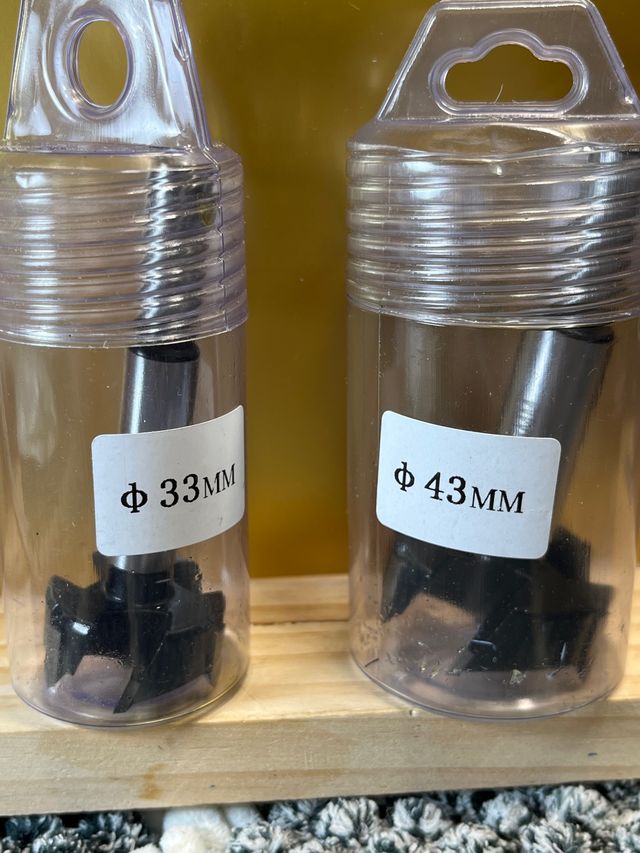 Se venden dos brocas de diferentes tamaños, ideales para trabajos de carpintería. - Broca de 33 mm. - Broca de 43 mm. - Se entregan en sus estuches originales.