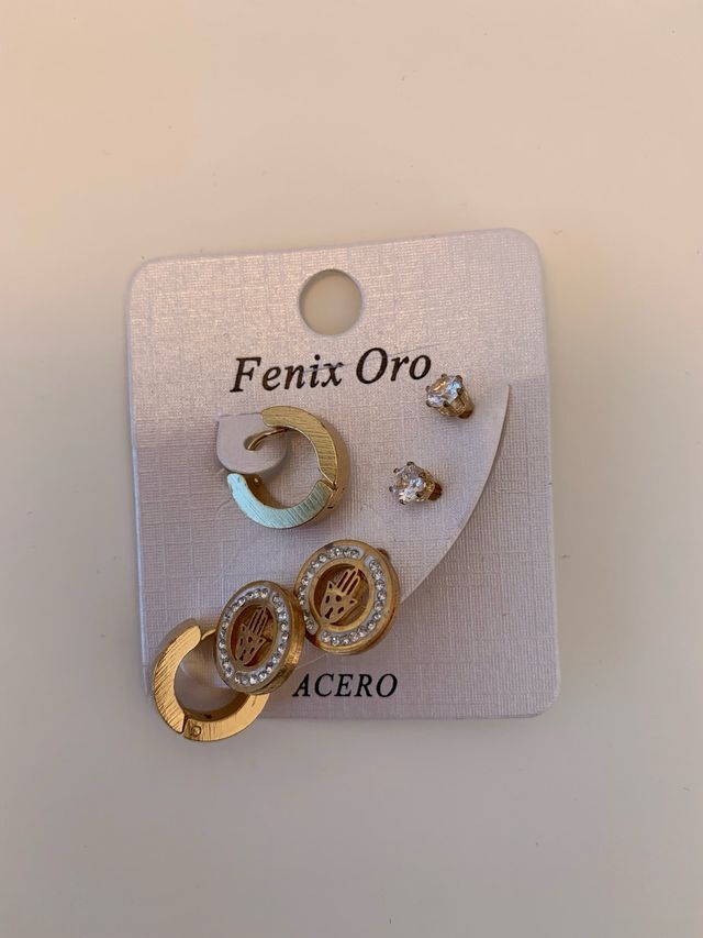 Juego 3 Pendientes Fenix Oro Hamsa Acero