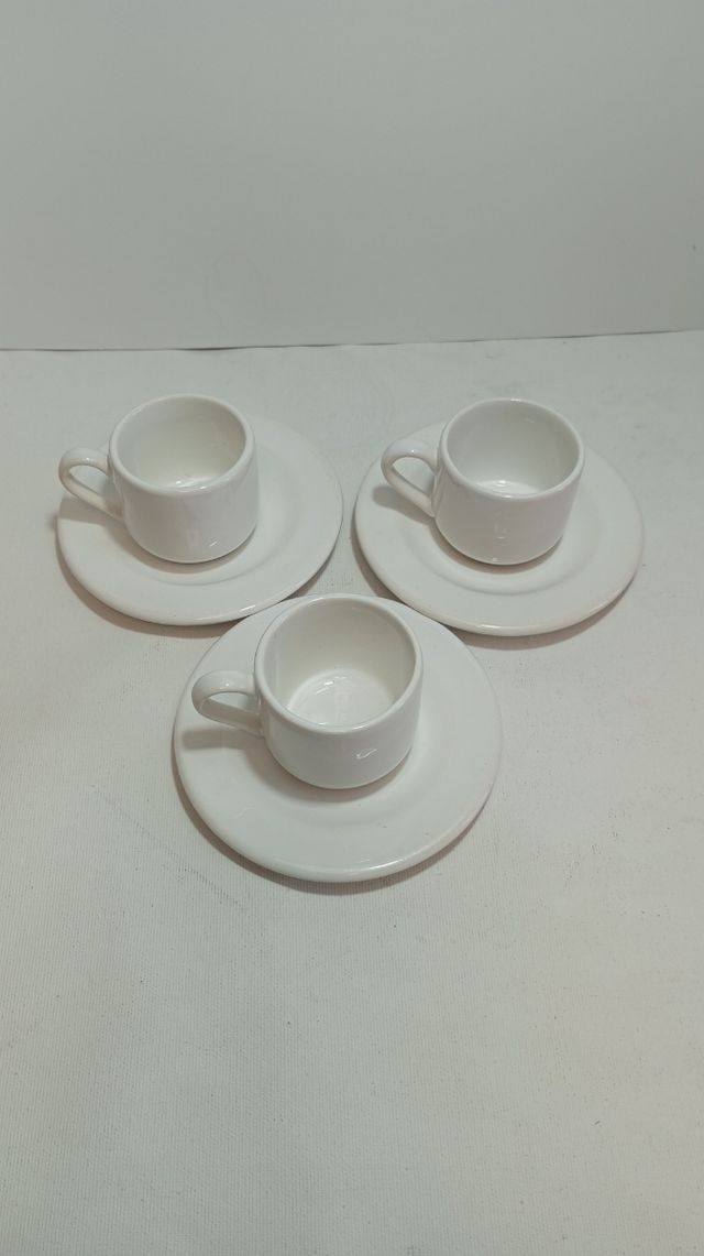 Juego 3 tazas café porcelana blanca
