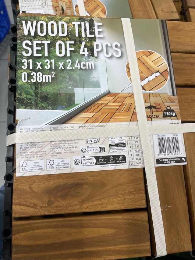 Juego 4 Baldosas Madera Acacia 31x31cm