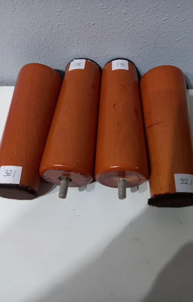 Detalles del productoSet de cuatro patas de madera para somieres o bases tapizadas,son cónicas y tienen un acabado en color marrón.