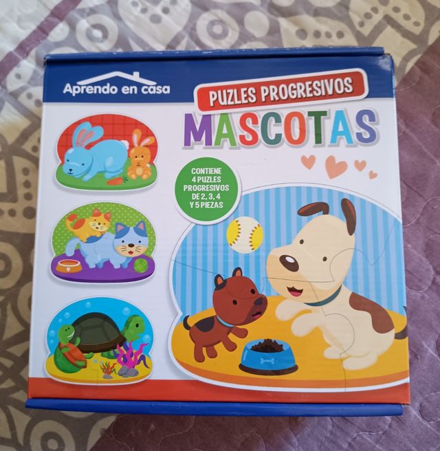 Vendo este juego de 4 puzzles de 2, 3, 4 y 5 piezas, de mascotas. Para niños de 3 a 5 años. Marca aprende en casa. Está como nuevo.