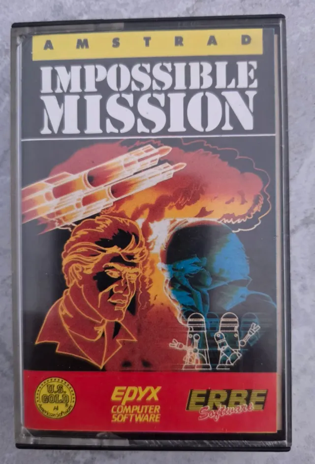 Juego de Impossible Mission para Amstrad. - Carcasa de cinta de casete. - Portada con arte retro. - Incluye juego de Epyx Computer Software.