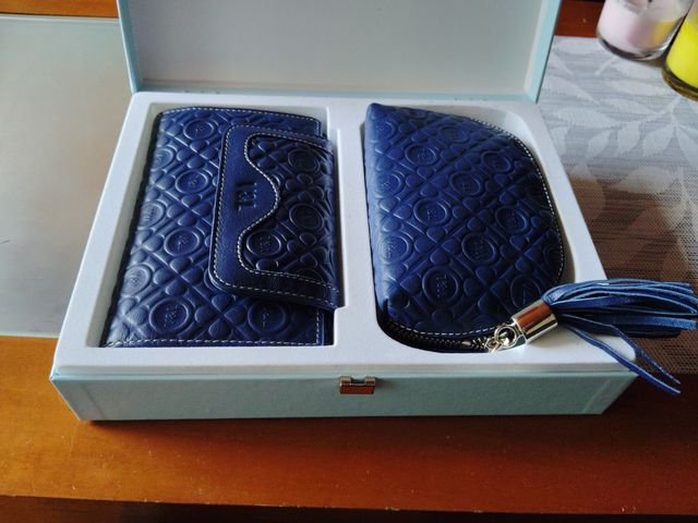 Juego Billetero y Neceser Piel Azul