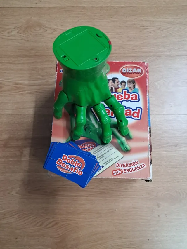 Juego de mesa Bizak Doble Desafío con una mano verde. - Incluye cartas de Doble Desafío. - Divertido juego para todas las edades.