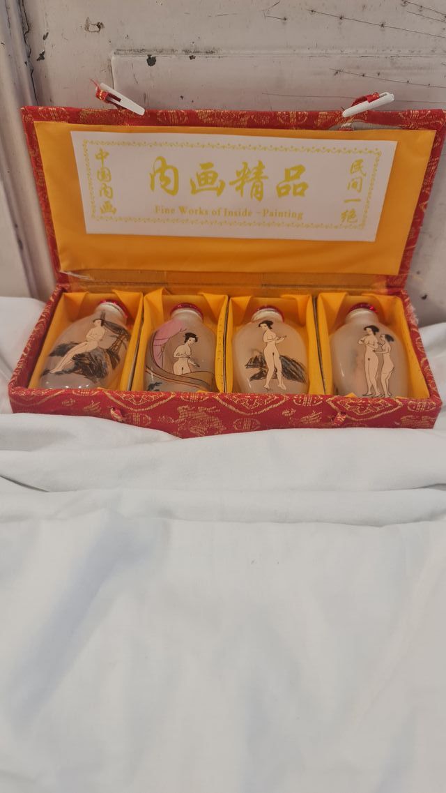 Detalles del productoJuego de delicadas botellitas artesanales, pintadas o talladas en detalle, diseñadas para contener snuff. ¿De qué estamos hablando? De tabaco pulverizado, pero no para fumar sino para aspirar con fines medicinales (Catalina de Médicis lo usaba para tratar la migraña) y más conocido en español como rapé.