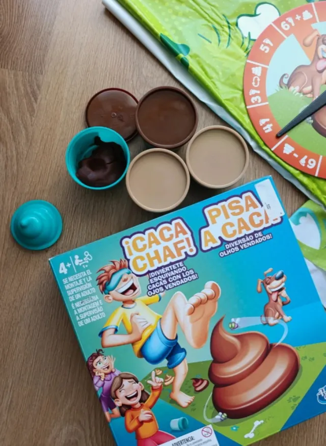Juego de mesa Caca Chaf. ¡Diviértete esquivando cacas con los ojos vendados! - Incluye plastilina de varios colores. - Tablero de juego con ruleta. - Apto para mayores de 4 años.
