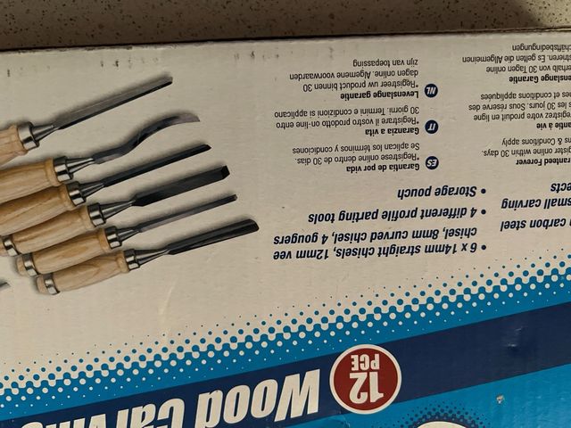 Detalles del productoCinceles para Tallar Madera, Juego de Herramientas Profesionales para Tallar Madera con 12 Cuchillos, bolsa de Almacenamiento, Kit de Cincel para Esculpir de Acero con mango de madera aergonómico. Todos los datos en las fotos .