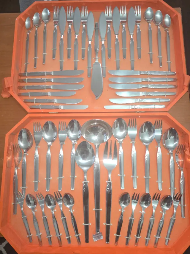 Juego Cubiertos Metal Plateado Estuche Naranja