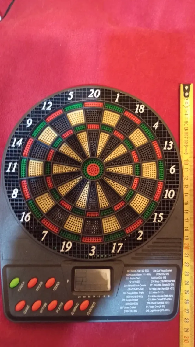 Detalles del productoJuego de dardos electrónico compacto, ideal para entretenimiento.