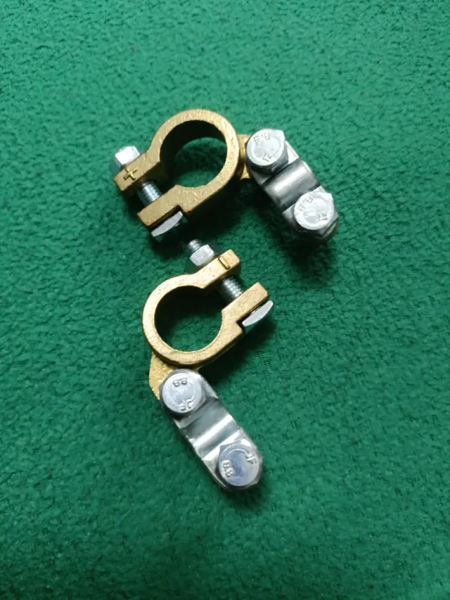 Detalles del productoSet de dos bornas para terminales de batería de coche. Fabricadas en latón para una buena conductividad.