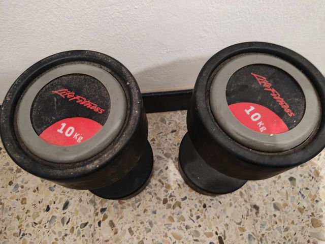 Detalles del productoSe vende juego de dos mancuernas de 10 kg cada una, de la marca Life Fitness.