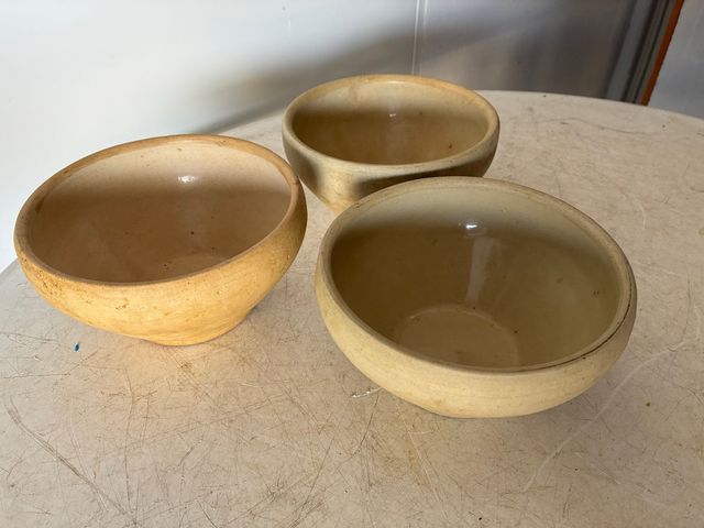 Juego de 3 cuencos de barro antiguos