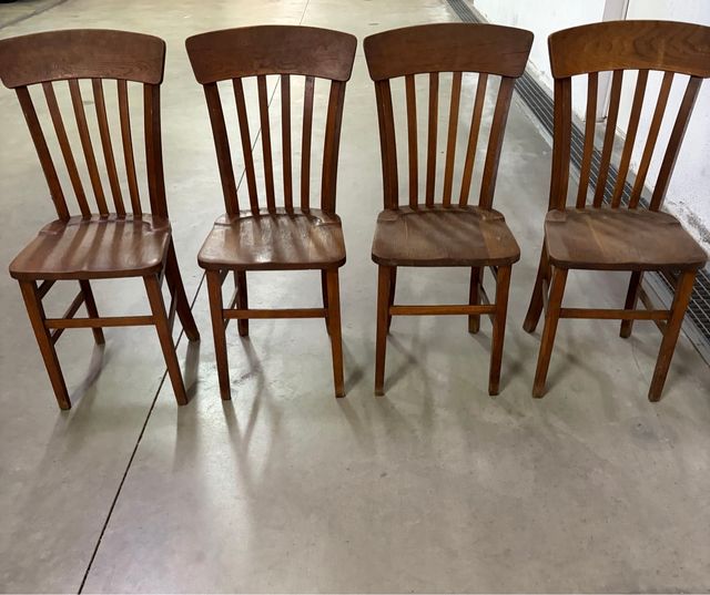 Conjunto de cuatro sillas de madera maciza con un diseño clásico y elegante. Para restaurar.