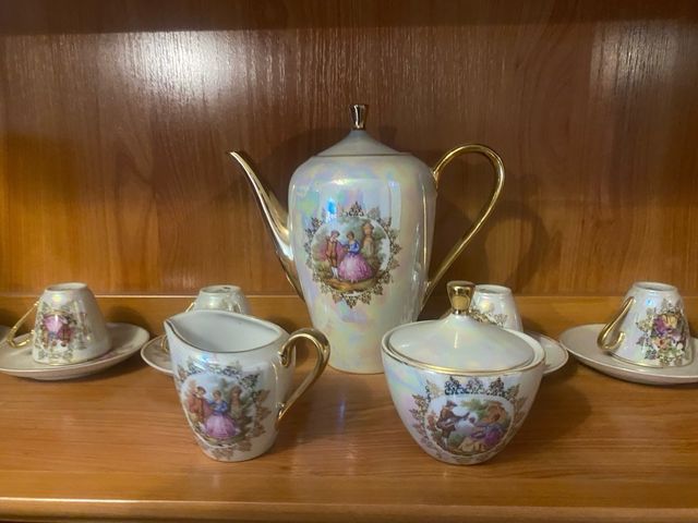 Detalles del productoElegante juego de café de porcelana con un diseño vintage de los años 70. Ideal para coleccionistas o para añadir un toque clásico a tu hogar.