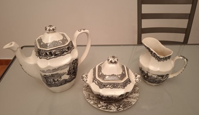 Detalles del productoJuego de café la Cartuja de Sevilla, modelo Paisajes, color negro e inalterable. Compuesto: