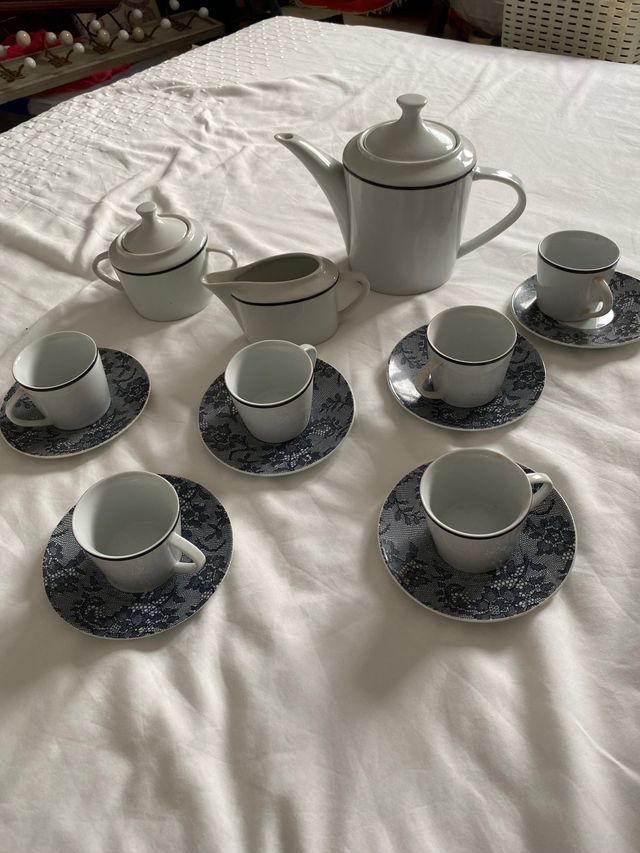 Precioso juego de café de Vittorio y Luchino. Formado por 6 tazas con sus platitos, tetera, azucarero y lechera.